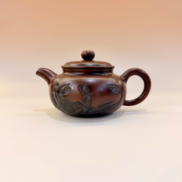 Ấm tử sa nê hưng biển phúc khắc sen thủ công đẹp 220ml AKC24