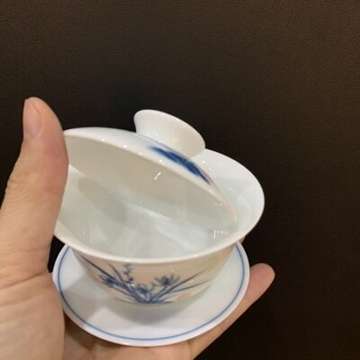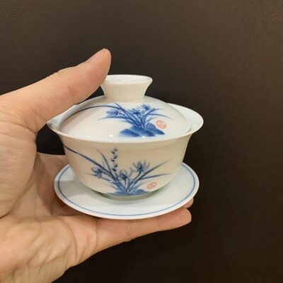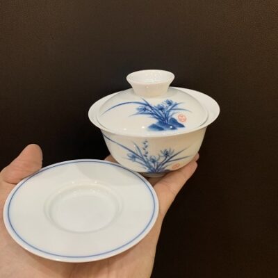 Ấm trà sứ cảnh đức vẽ tay hoa lan dáng chén khải 150ml đẹp AS07