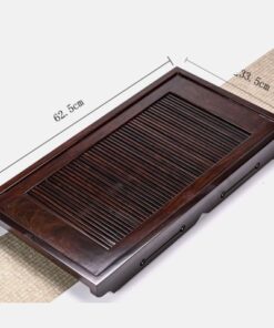 Khay trà gỗ gụ đựng ấm chén dáng dài có khay hứng inox 62x33cm KTG27
