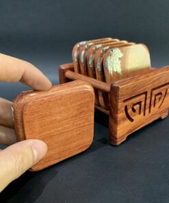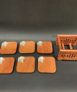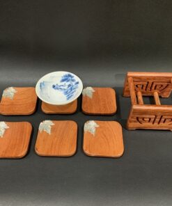 Đế chén trà gỗ hương hình vuông đính bạc lót ly trà đẹp 7x7cm LC12