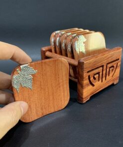 Đặt mua Đế chén trà gỗ hương hình vuông đính bạc lót ly trà đẹp 7x7cm LC12