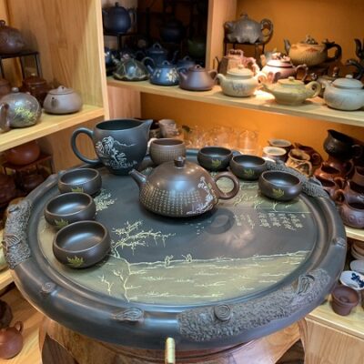 – Hoạ tiết: Sơn thuỷ hữu tình, viền nổi gốc tùng