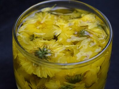 – Nguyên liệu: Hoa cúc vàng tươi sấy khô