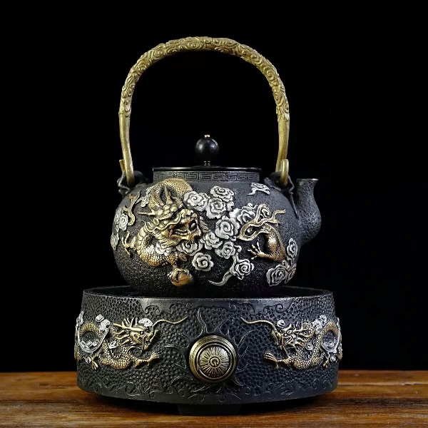 Đặt mua Bộ bếp đun nước pha trà cao cấp kèm ấm tetsubin gang đắp Rồng BD18-BO