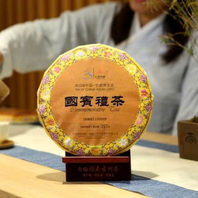 Trà phổ nhĩ chín cao cấp bánh 357g kỷ niệm CAEXPO năm 2018 PNC08