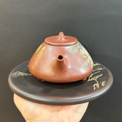 Ấm tử sa tiêu anh khắc trúc nguyên khoáng đất cũ thủ công 300ml ATS508