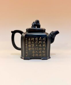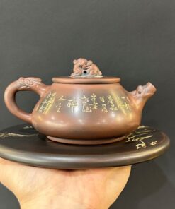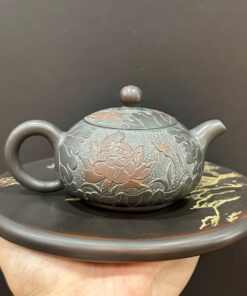 Ấm pha trà hắc sa nê hưng hỏa biến thủ công khắc sen 180ml đẹp AKC175