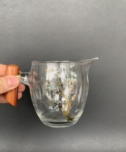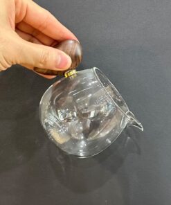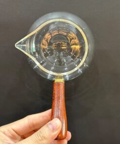 Chén tống thủy tinh quai gỗ làm chuyên rót trà đẹp 220ml CT27