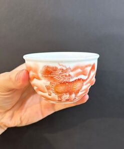 Chén trà sứ cảnh đức cao cấp phàn hồng thái vẽ tay kỳ lân 120ml CS94
