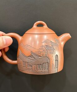 Ấm pha trà tử sa nê hưng dáng tần quyền khắc phố cổ 240ml tinh xảo AKC45