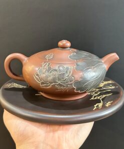Ấm pha trà tử sa nê hưng hỏa biến dáng liên tử khắc sen cá 300ml AKC250