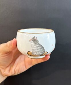 Chén uống trà cảnh đức cao cấp nung củi vẽ tay hình mèo đẹp 90ml CS37