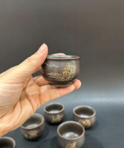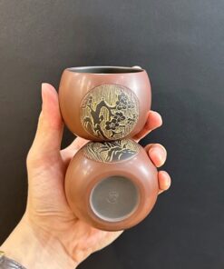 Chén uống trà đen tử sa nê hưng hoạ tiết vẽ vảy vàng đối ẩm 60ml CNH19
