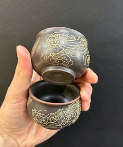 Chén uống trà tử sa nê hưng khắc rồng thủ công làm ly chủ đẹp 120ml CNH45