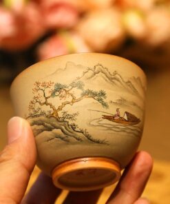 Chén uống trà sứ Cảnh Đức vẽ tay thuyền chài sơn thủy 100ml CS79