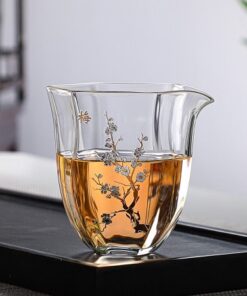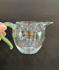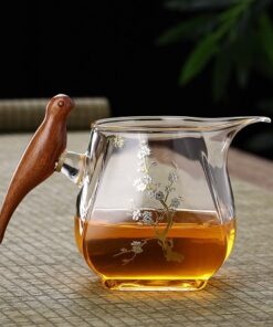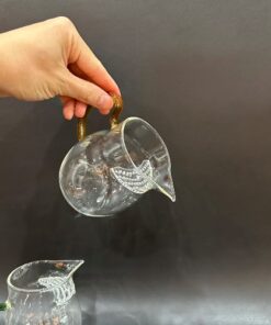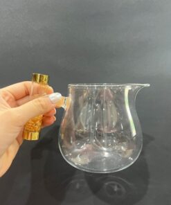Chuyên trà thủy tinh quai gỗ cao cấp làm chén tống rót trà 350ml CT08