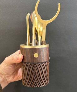 Dụng cụ pha trà gỗ gụ dáng vuông hình lá phong đẹp KH15