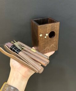 Dụng cụ pha trà gỗ dáng vuông họa tiết lá đẹp KH14