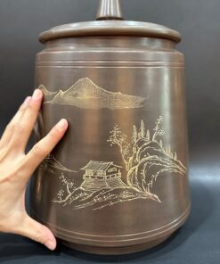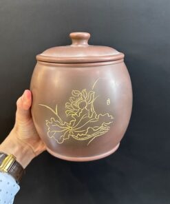 Hũ bảo quản trà lên men tử sa nê hưng thủ công khắc sen đẹp HT70