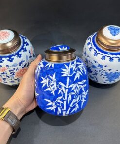 Hũ bảo quản trà sứ cảnh đức vẽ tay thủ công họa tiết đẹp 800ml HT57