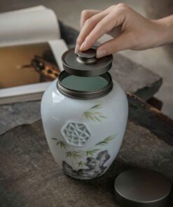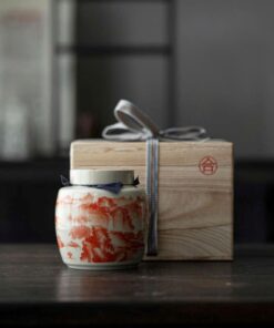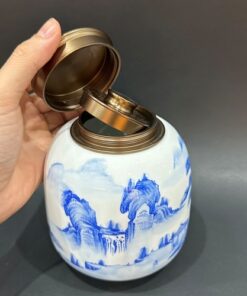 Hũ đựng trà sứ cảnh đức cao cấp thủ công sơn thủy đẹp cỡ to 1,2L HT59