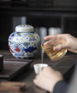 Hũ đựng trà sứ cảnh đức cao cấp vẽ tay nắp sứ 2 lớp khít có hộp đẹp HT47