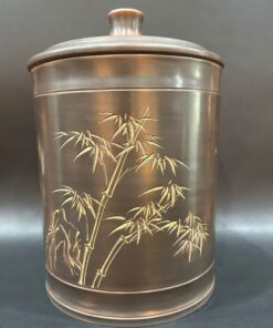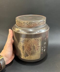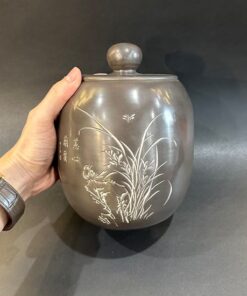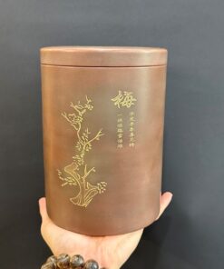 Hũ đựng trà phổ nhĩ dạng bánh tròn gốm tử sa cao cấp khắc trúc đẹp HT50