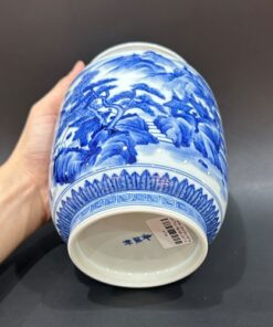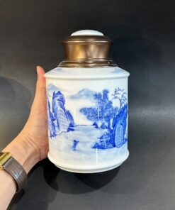 Hũ đựng trà sứ cảnh đức vẽ tay sơn thủy nắp xoáy kín đẹp 1L HT54