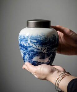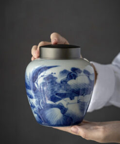 Hũ đựng trà sứ cảnh đức vẽ tay thanh minh thượng hà đồ 900ml HT03