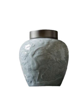 Hũ đựng trà sứ men rạn họa tiết tùng hạc nắp xoáy 2 lớp 900ml HT01