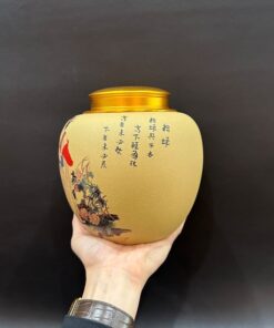 Hũ đựng trà tử sa hỏa biến cao cấp khắc hoa đẹp 1L HT67