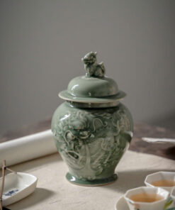 Hũ đựng trà sứ men ngọc họa tiết kỳ lân nắp kín 835ml 20x8cm HT16
