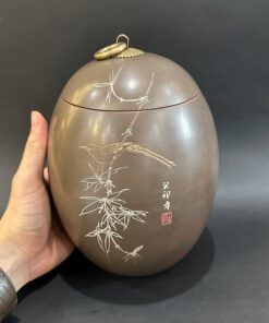 Hũ đựng trà tử sa nê hưng khắc trúc bảo quản trà lên men đẹp HT61