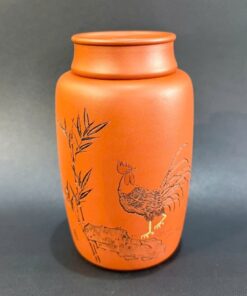 Hũ đựng trà tử sa nguyên khoáng chu nê khắc gà đẹp 5x8x13.5cm HT72