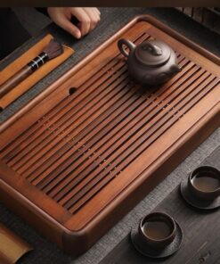 Khay trà gỗ gụ dạng hộp bo góc bày ấm chén cao cấp 47x26cm KTG04