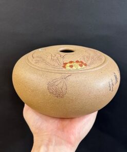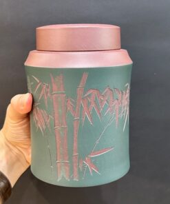 Lọ đựng trà tử sa nê hưng trà lên men thủ công khắc sen đẹp HT61