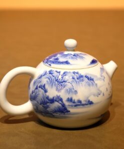 Ấm sứ cảnh đức vẽ tay sơn thủy men thanh hoa cao cấp 210ml AS43
