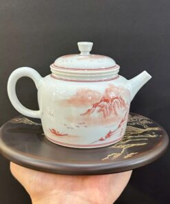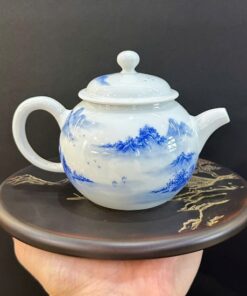 Ấm sứ cảnh đức Thanh Hoa vẽ tay sơn thủy đẹp dáng tây thi 200ml AS43