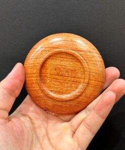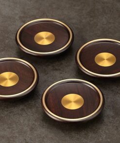 Lót ly trà đẹp chất liệu gỗ hương dáng tròn viền vàng đồng LC39
