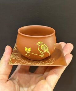 Lót ly trà gốm tử sa thủ công kê chén trà hình hạc tiên đẹp LC59