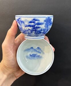 Ly trà chủ sứ cảnh đức men lam cao cấp vẽ tay thiên lý giang sơn 130ml CS83