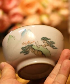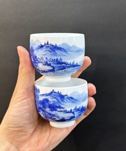 Ly trà sứ cảnh đức cao cấp vẽ tay sơn thủy thủ công đẹp 80ml CS71
