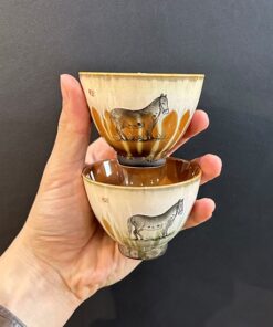 Ly trà sứ cảnh đức men thái hội nung củi họa ngựa thủ công 100ml CS33