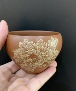 Ly trà tử sa cao cấp nê hưng khắc hoa mẫu đơn thủ công 150ml CNH56