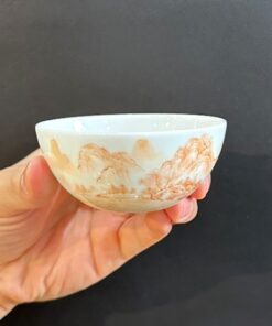 Ly trà sứ phấn thái cảnh đức trấn cao cấp vẽ tay sơn thủy đẹp 140ml CS74