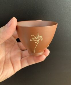 Ly uống trà đẹp tử sa nê hưng thủ công khắc sen 55ml CNH63