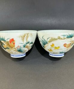 Ly uống trà cao cấp sứ cảnh đức vẽ tay hình gà đẹp uống trà ngon130ml CS46