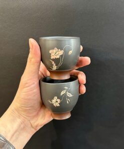 Ly uống trà đẹp cao cấp tử sa nê hưng dáng cao khắc nhiều họa tiết 80ml CNH67