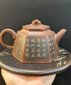 Ấm trà hoả biến cao cấp dáng lục phương khắc sơn thuỷ đẹp 350ml AKC80