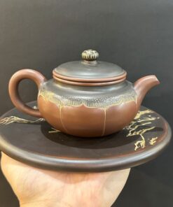 Ấm trà tử sa nê hưng hỏa biến đắp nổi tùng thủ công đẹp 200ml AKC156